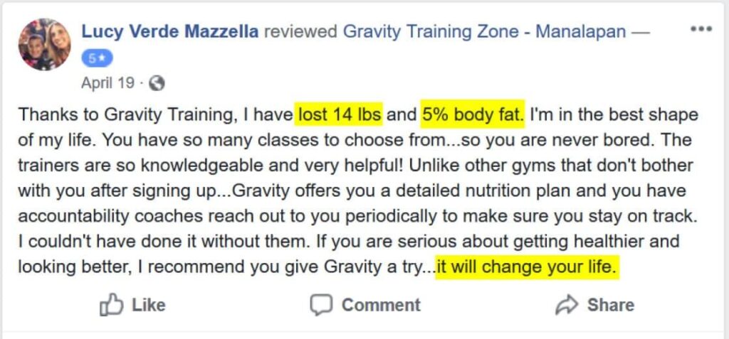 Joining Gravity was one of the best decisions Ieber made for yourself i’m down 25 Pounds, i’m so excited.